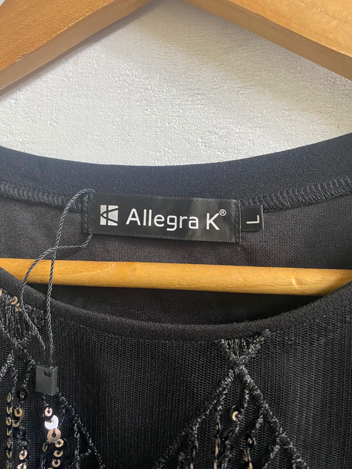ALLEGRA|L|BUST 20| BLACK AND GOLD SEQUIN FRINGE CROP TOP