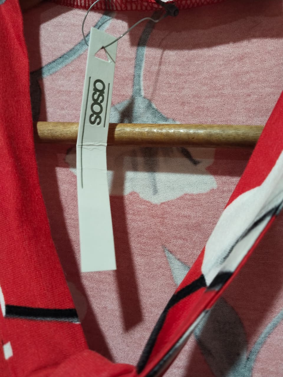 ASOS DESIGN ASOS Maxi Tea Dress With Neck Tie In Red Floral