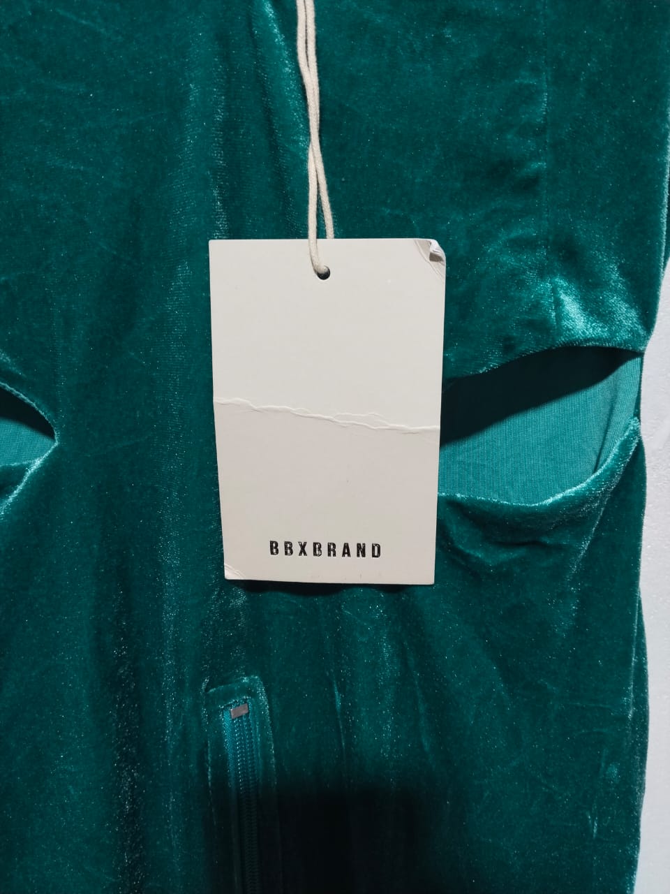 BBX BRAND|XS/S|BUST 16.5|GREEN VELVET CUT-OUT LACE-UP MAXI DRESS