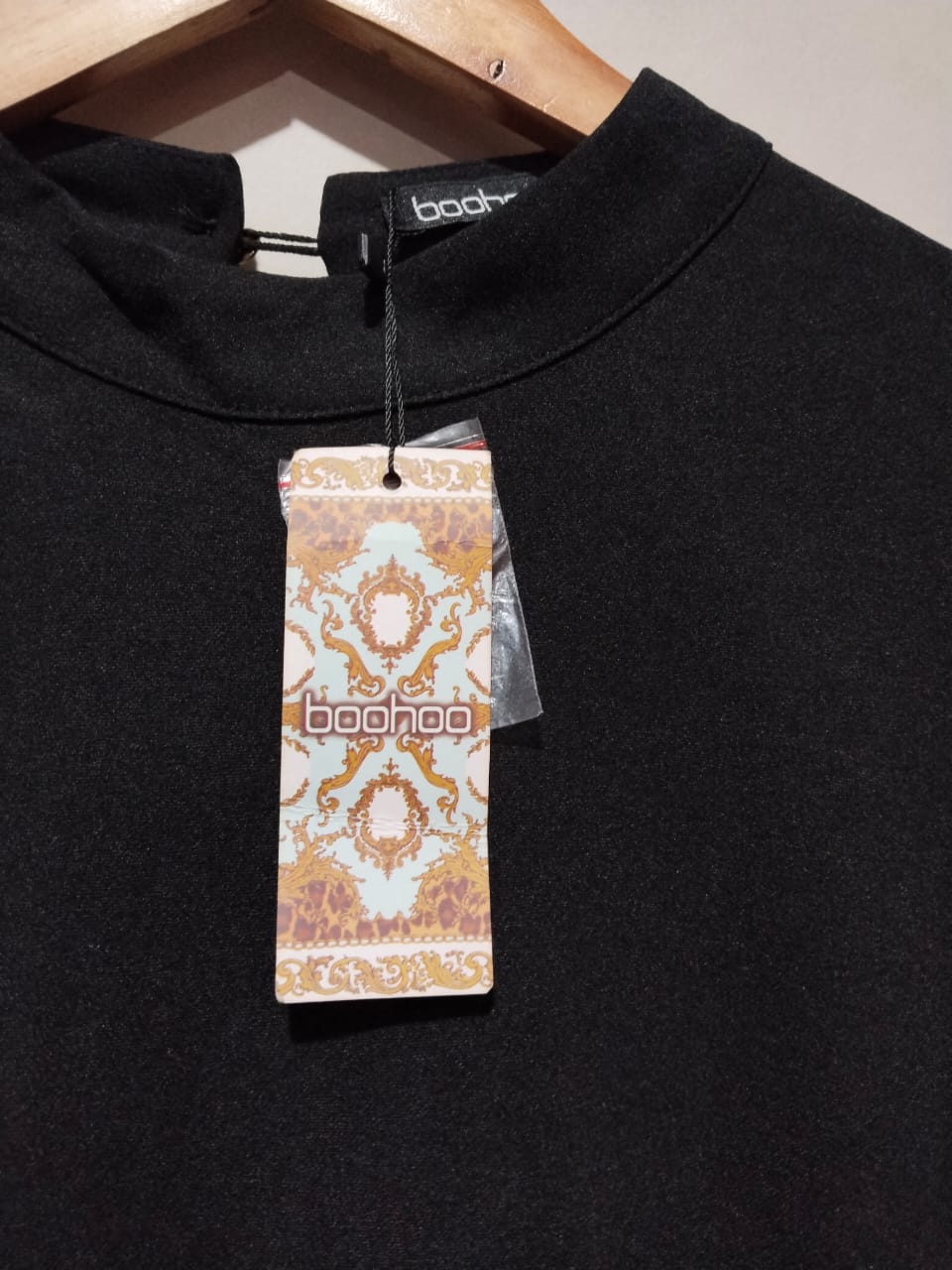 BOOHOO Black Long-Sleeved Dress With A Flared Skirt