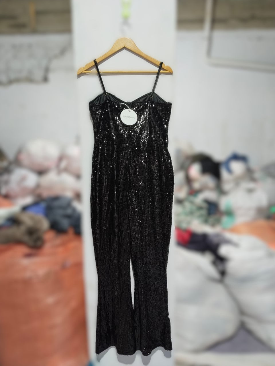 BOOHOO|L|BUST 16|Sequined Flare-Leg Jumpsuit BLACK