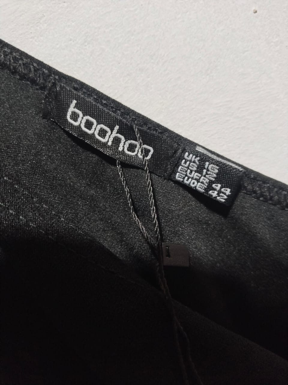 BOOHOO|L/XL|BUST 18|BLACK ONE-SHOULDER DRAPED TULIP HEM MIDI DRESS.