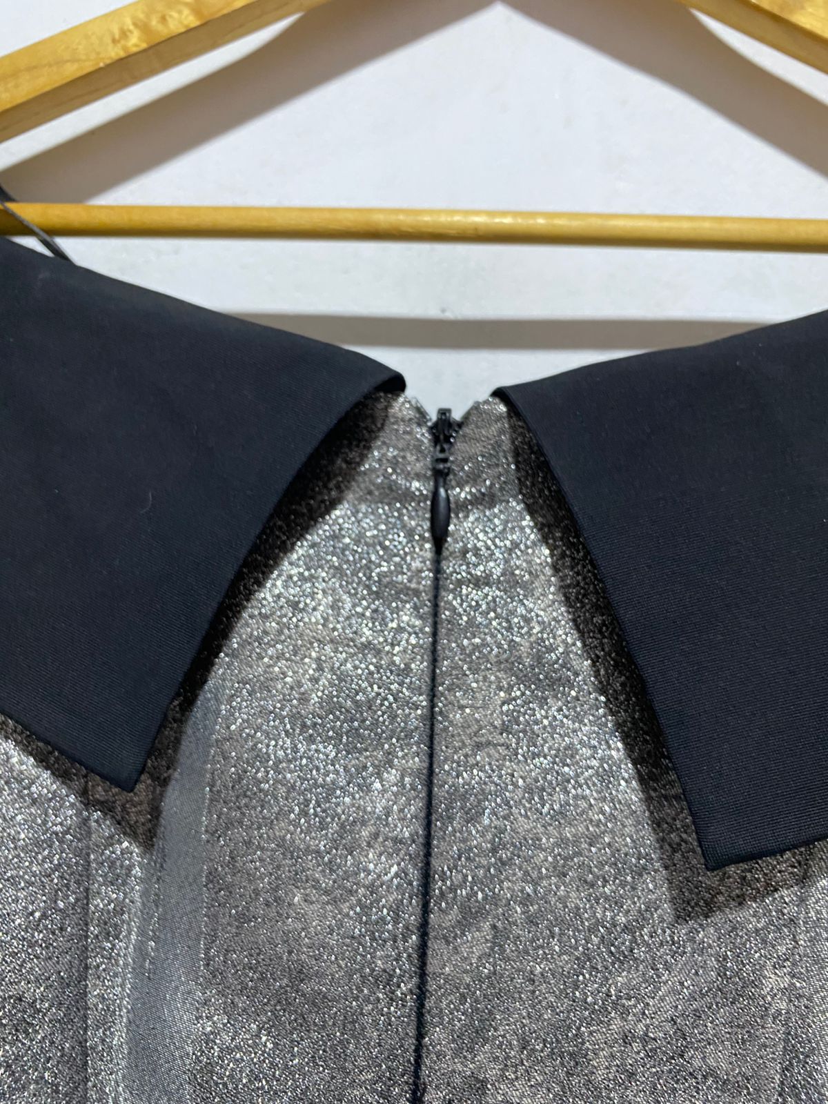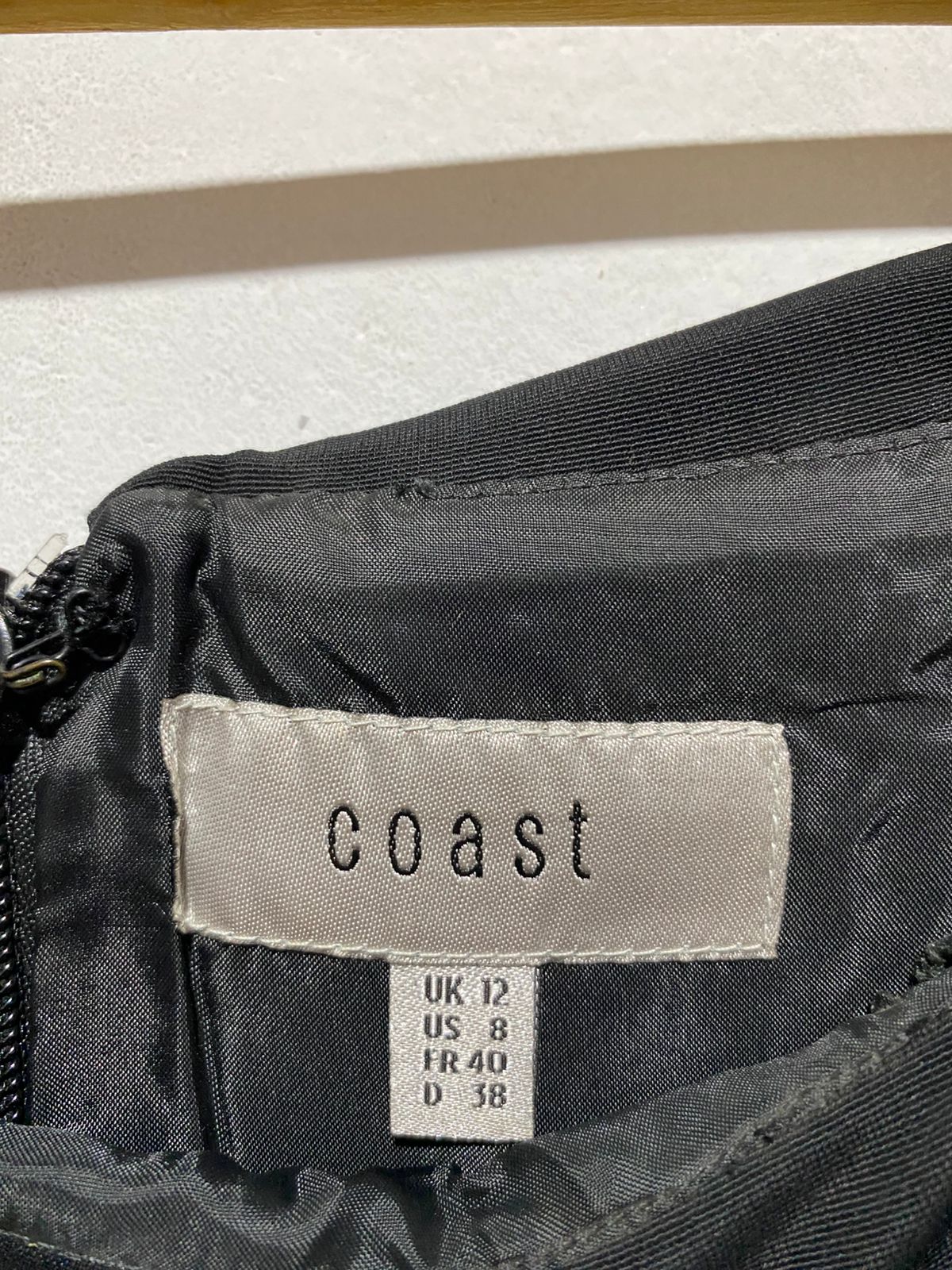 COAST |M|BUST 16|BLACK AND SILVER BARDOT JACQUARD MIDI DRESS