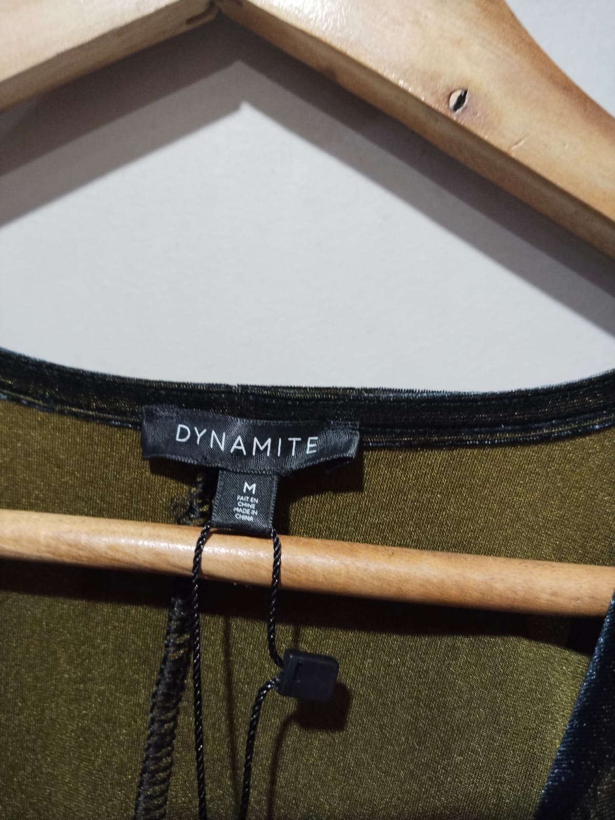 DYNAMITE|M|BUST 21|Dark Green Velvet Long Sleeve Bodysuit