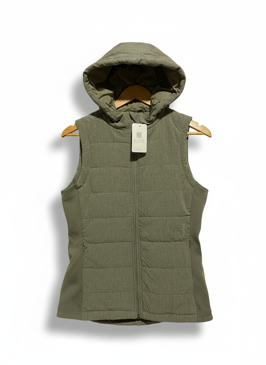 ELL&VOO|XS/S|BUST 18| Khaki Green Hooded Insulated Vest