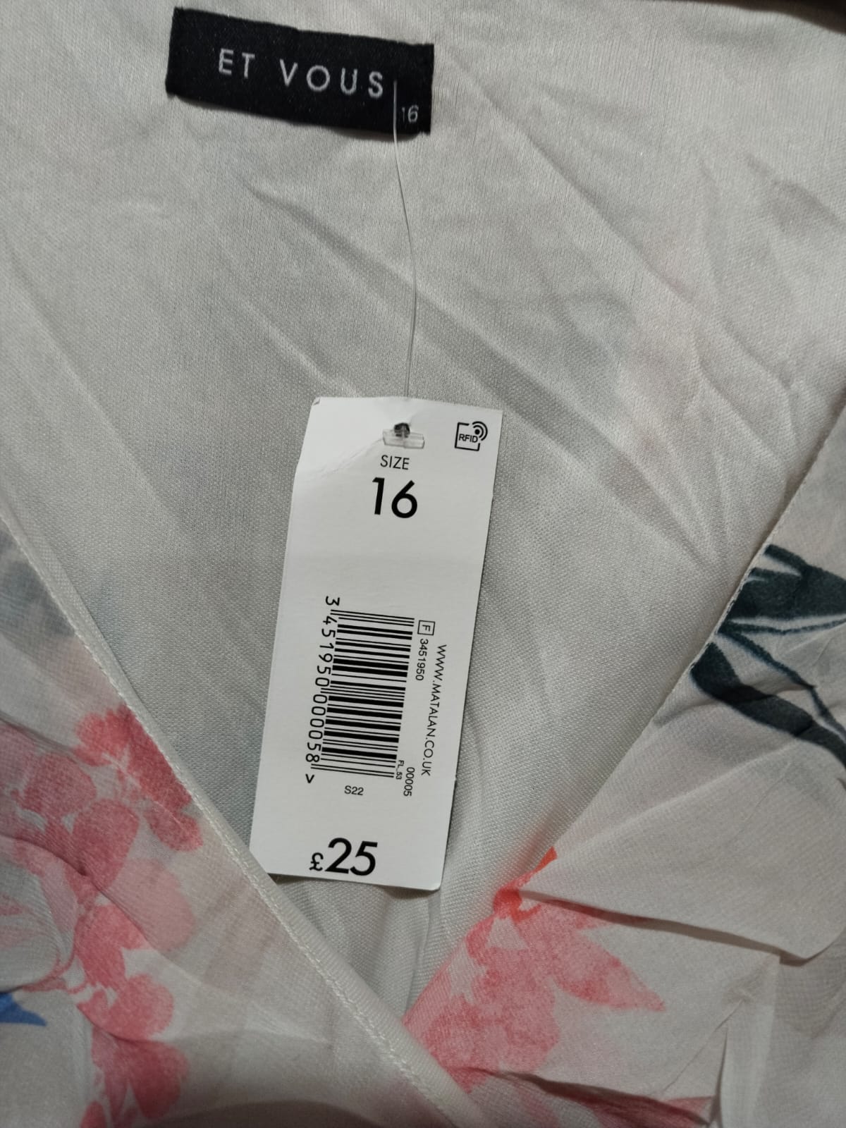 Et Vous White Multi Floral Print Ruffle Wrap Midi Dress