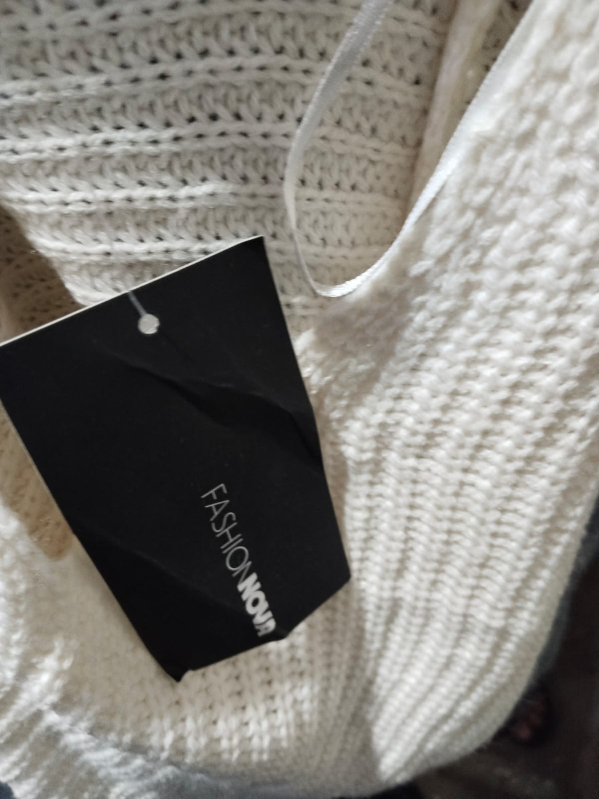 FASHION NOVA|S|BUST 20| WHITE RIBBED V-NECK SWEATER