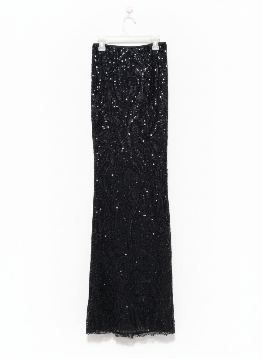 FASHION NOVA|S|WAIST 22|BLACK SEQUIN MAXI SKIRT