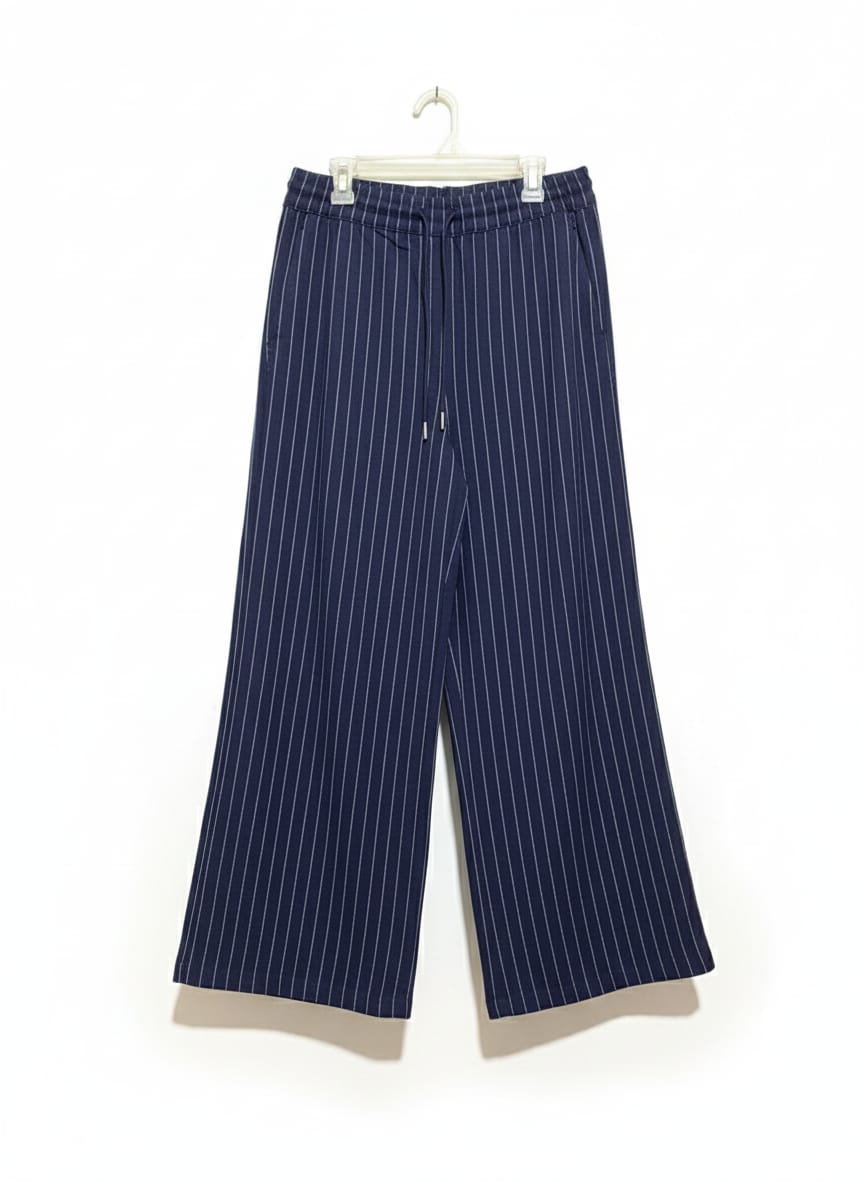 H&M DIVIDED|XS\S|WAIST 28|NAVY BLUE PINSTRIPE WIDE-LEG TROUSERS