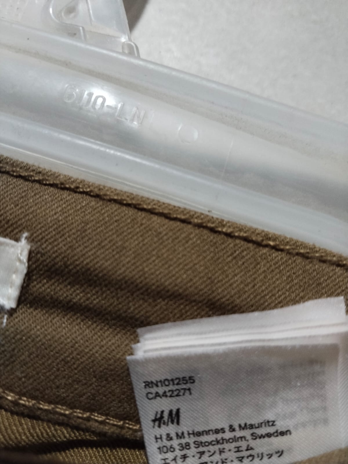 H&M Men's Slim Fit Cotton Twill Trousers in Dark Khaki