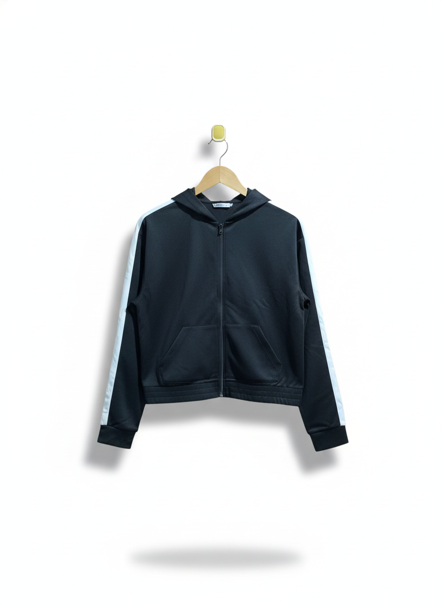H&M MOVE|M|BUST 21| BLACK ZIP-UP HOODIE WITH WHITE SIDE STRIPES