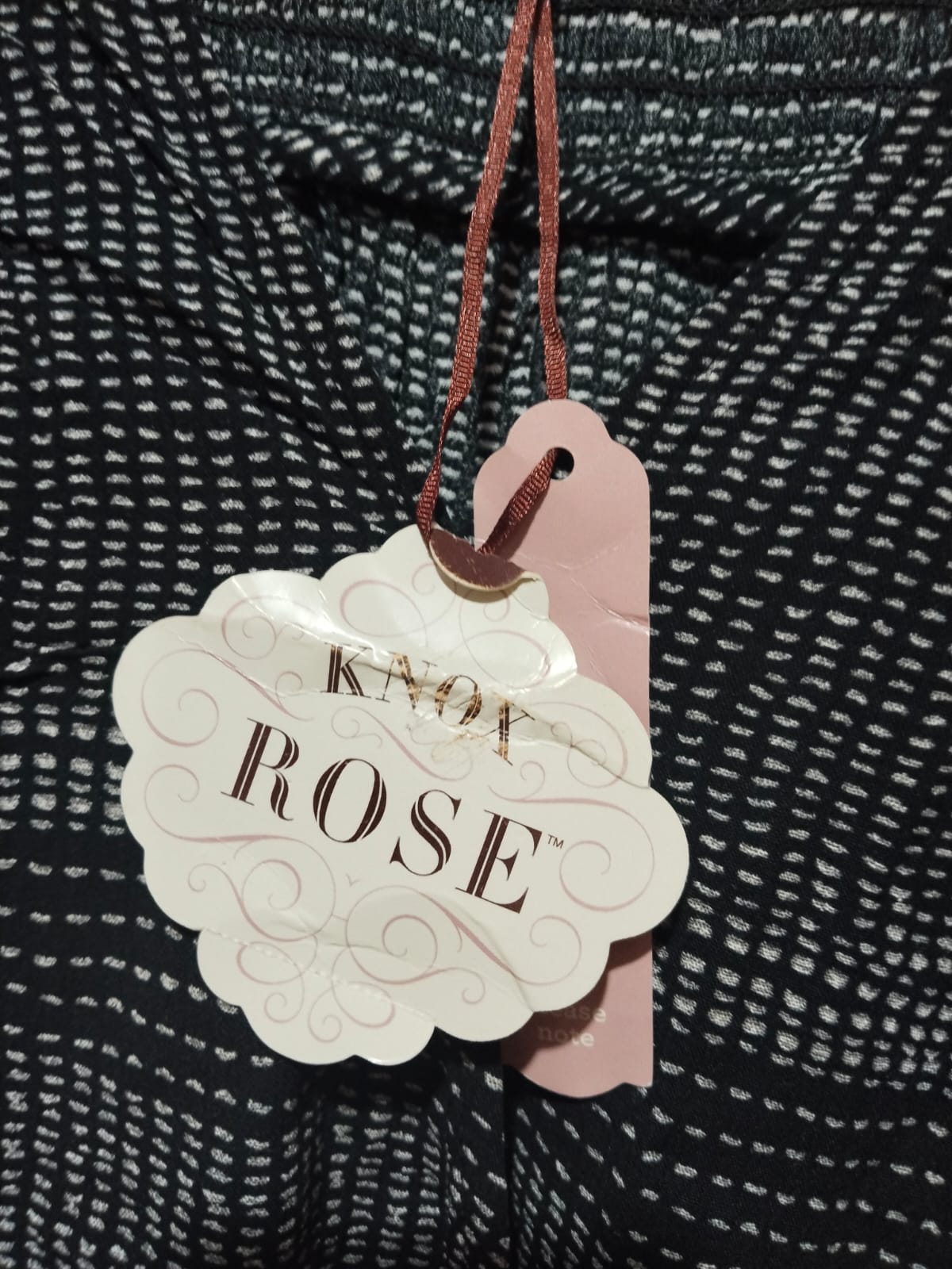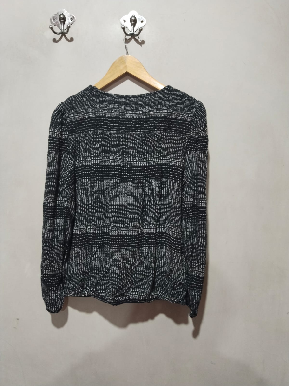 KNOX ROSE|S|BUST 19|Black and White Long Sleeves Boho Wrap Blouse with Elastic Hem