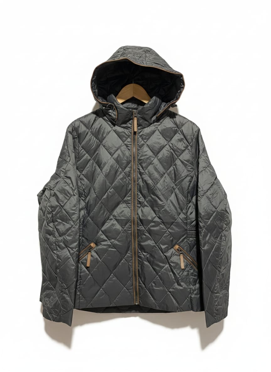 MARK&SPENCER PER UNA|XL|BUST 23|GREY DIAMOND QUILTED HOODED JACKET WITH TAN ACCENTS