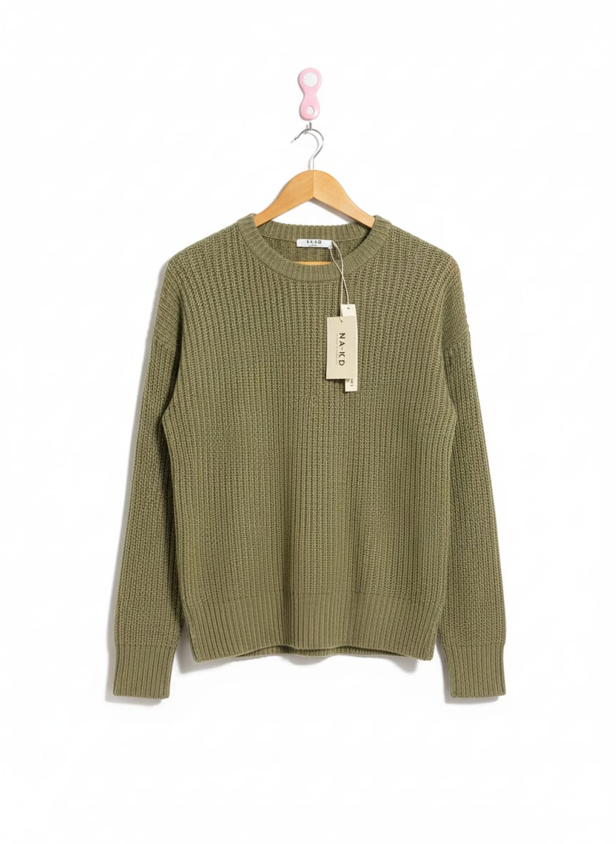 NAKD|S/M|BUST 18|OLIVE GREEN NA-KD RIBBED KNIT SWEATER