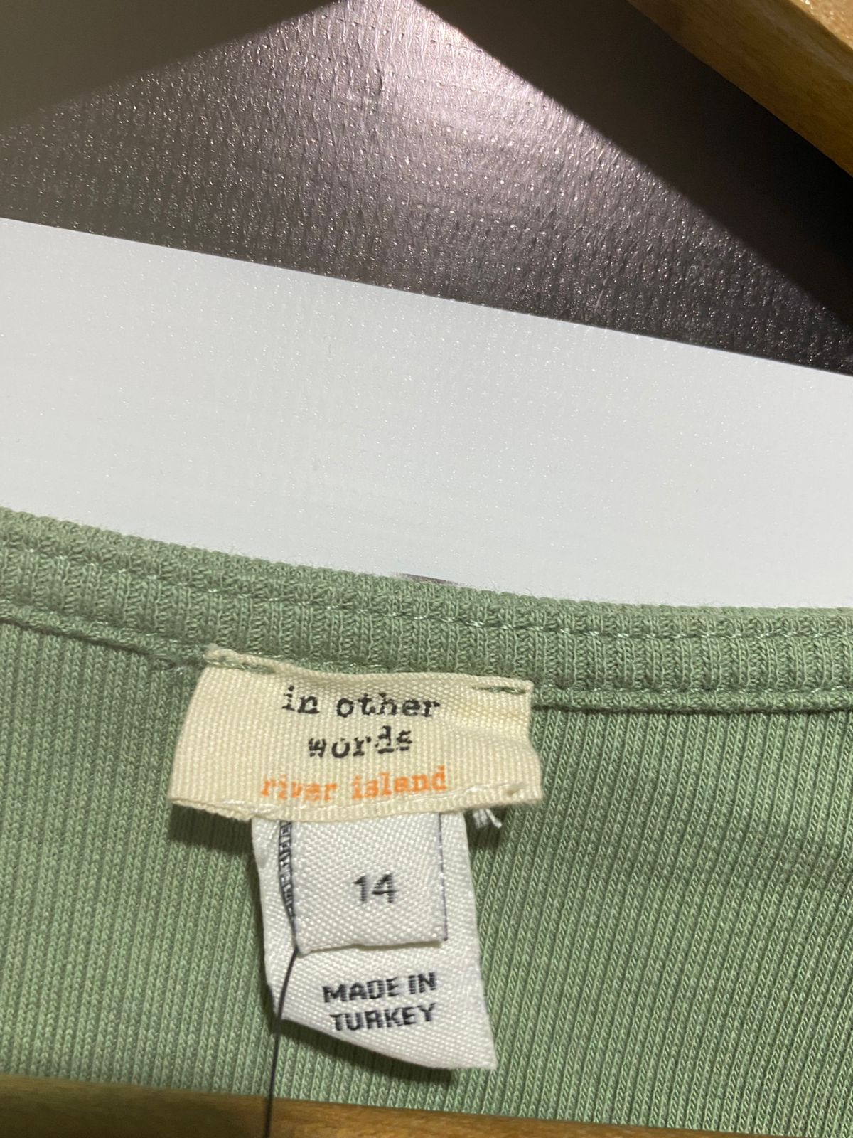 RIVER ISLAND |L| BUST 17| Women's Olive Green V-Neck Top with Lace Detailing