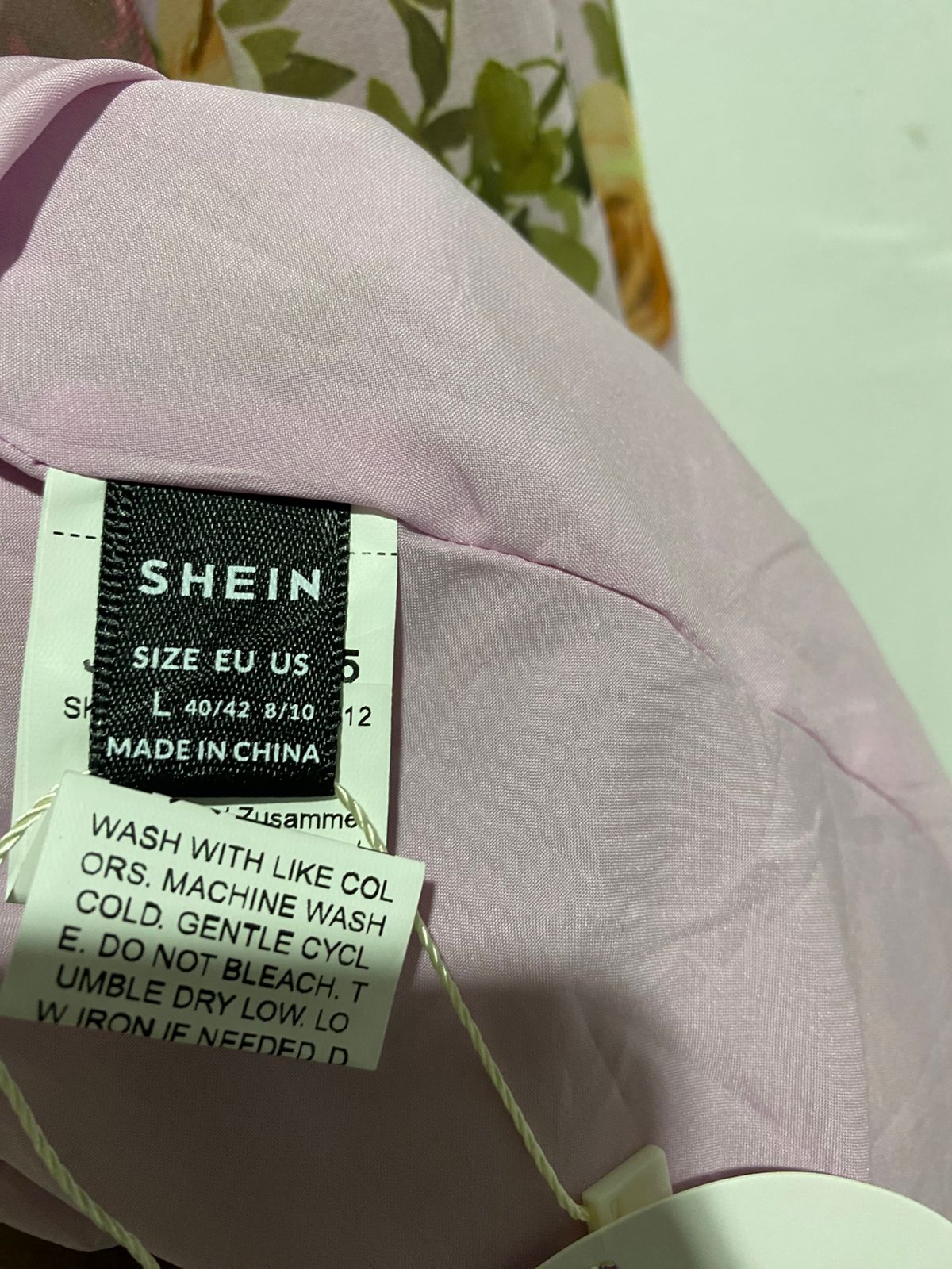 SHEIN VCAY|L|BUST 15|FLORAL PRINT CROSS-BACK RUFFLE MAXI DRESS