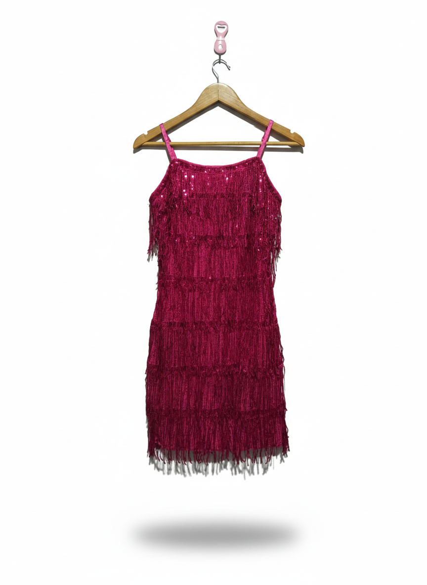 SHEIN|XS|BUST 14|FUCHSIA PINK FRINGE SEQUIN MINI DRESS