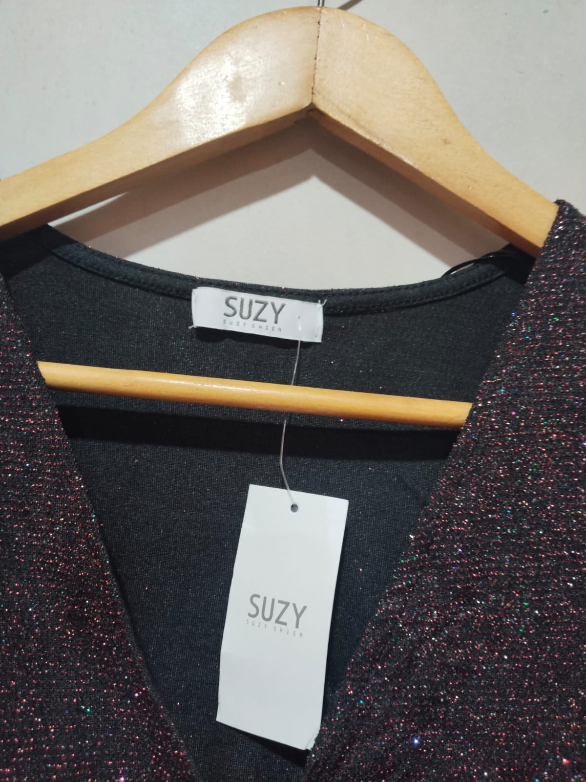 SUZY SHIER|MBUST 17|Surplice Glitter Long Sleeve Blouse