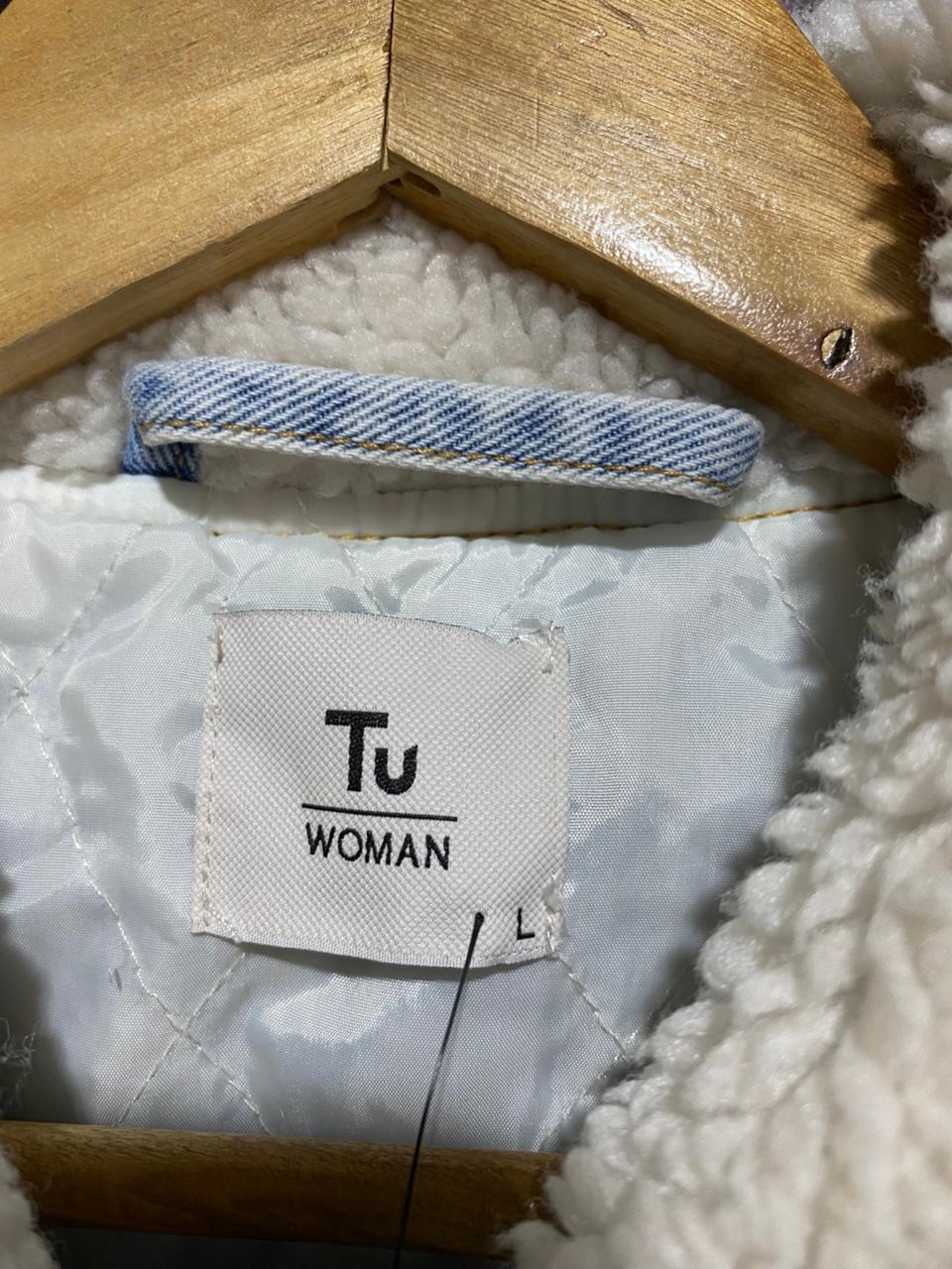 TU |L| BUST 26| Oversized Light Wash Denim Jacket Borg Collar And Lining