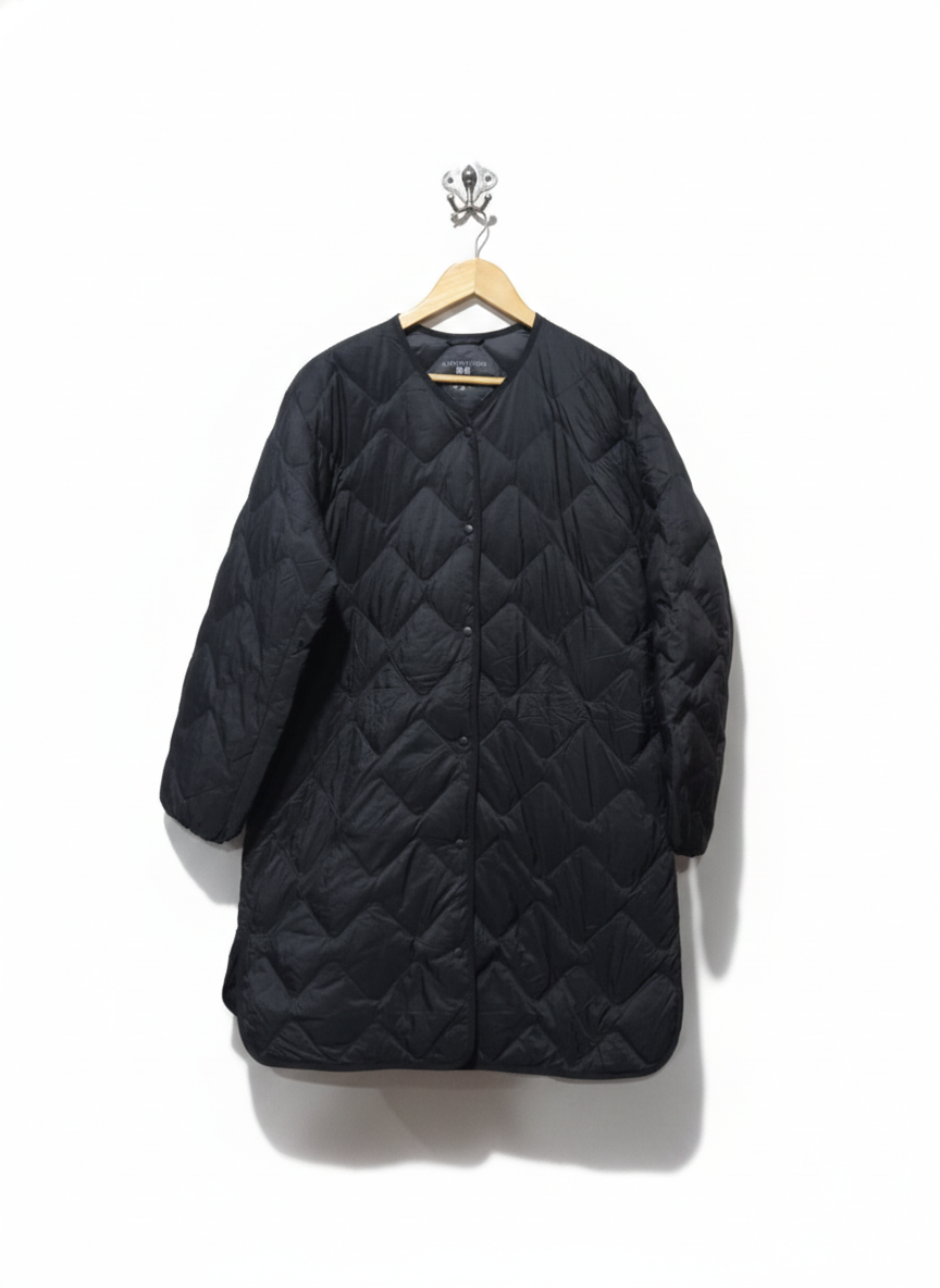 UNIQLO| L|BUST 23|Black Quilted Collarless Women's Ultra Light Down Long Coat