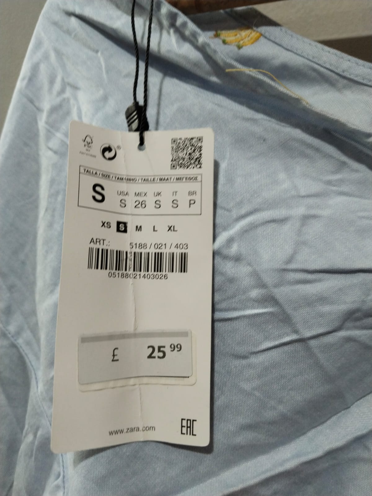 Zara Basic Collection Embroidered Fruit Chambray Bow Back Top