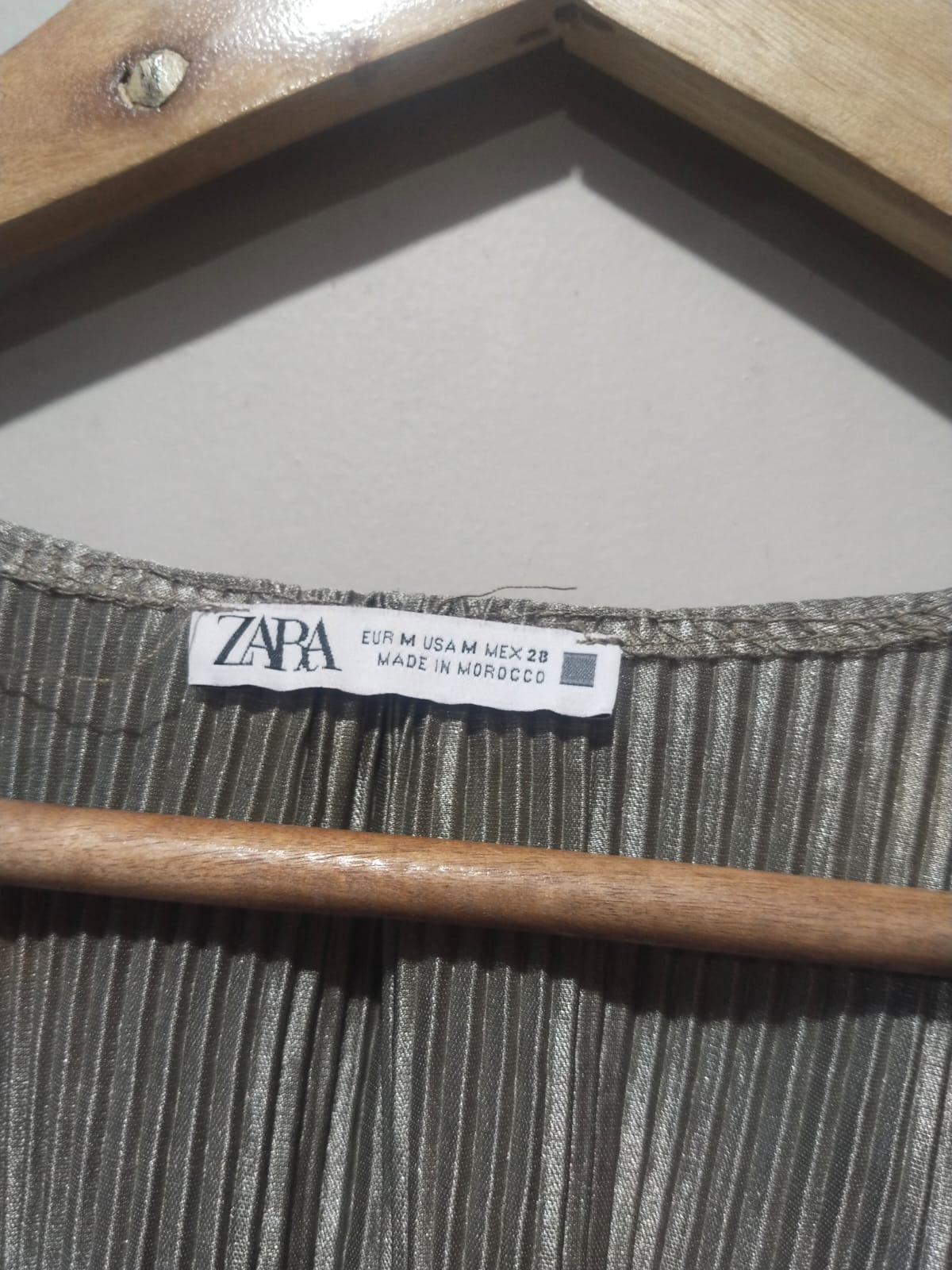Zara GREY Crinkle Fabric Ruffle Shoulder Top
